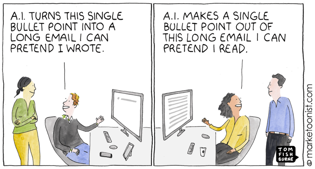 It’s a pattern I’m seeing everywhere. By blindly grabbing AI and outsourcing tasks that reveal what makes us unique, we risk degrading human skills, eroding trust and connection, and – I say this without hyperbole – automating ourselves to extinction.
